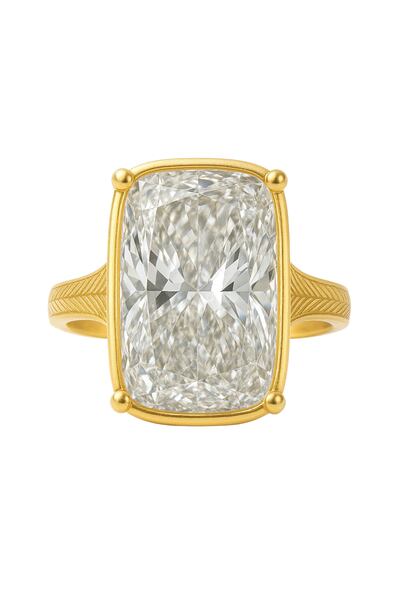 Mehul Pethani of Cara Jewellers in Dubai places the cost between $150,000 and $500,000, depending on clarity, if bought in the UAE. He tells The National he believes the diamond is about 10 carats. Benjamin Khordipour of Estate Diamond Jewelry gives a figure closer to $550,000, telling Brides.com that the ring is “a stunning elongated antique cushion-cut diamond, approximately eight carats, F colour and VS1 clarity”.