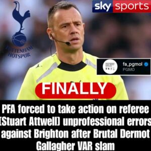 It could become a decisive moment in the relegation fight after a controversial call denied Tottenham a clear penalty against Brighton, triggering significant fallout beyond the pitch. The Professional Footballers’ Association is reportedly preparing to take action against referee Stuart Attwell following heavy criticism of his handling of the incident, …